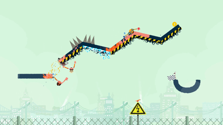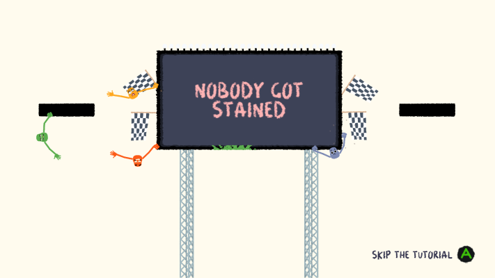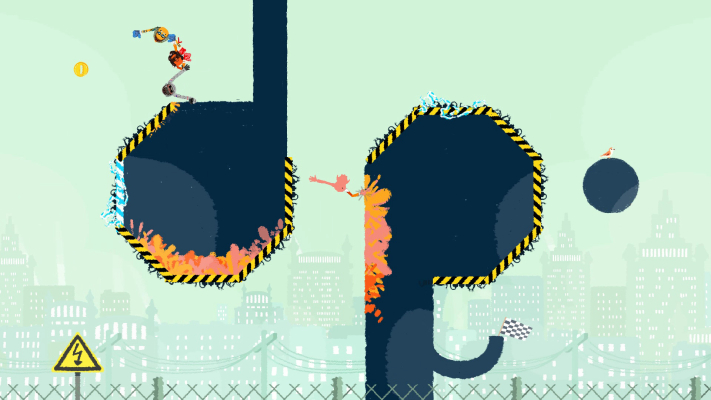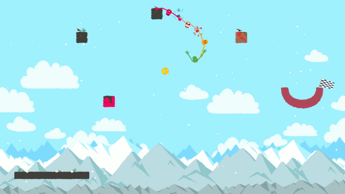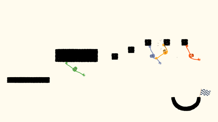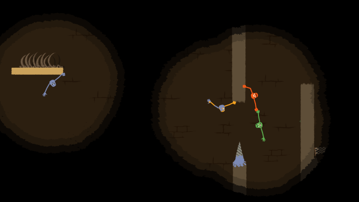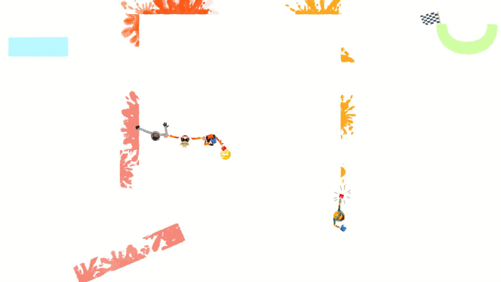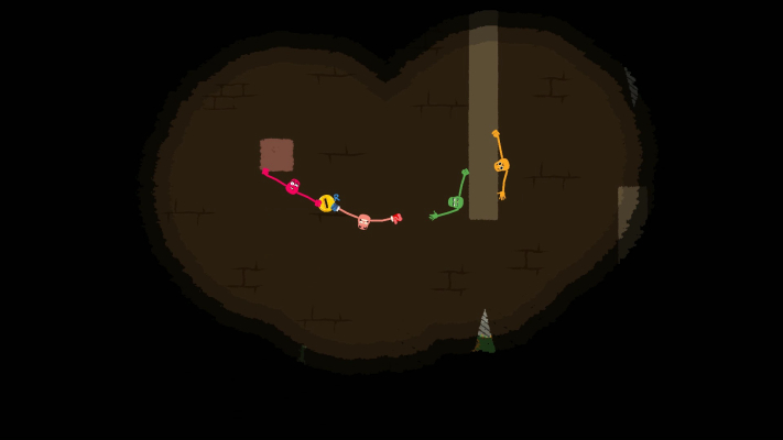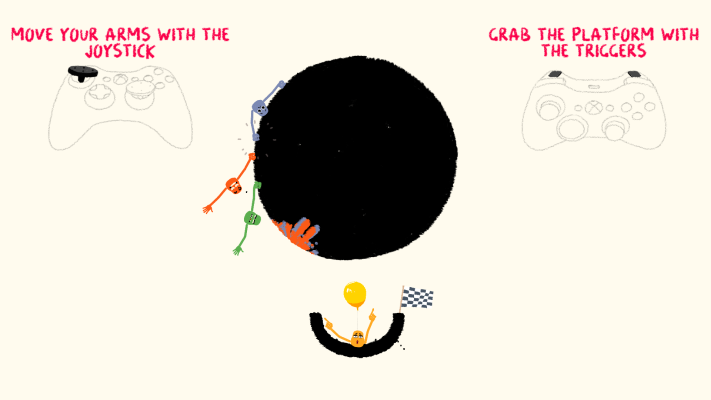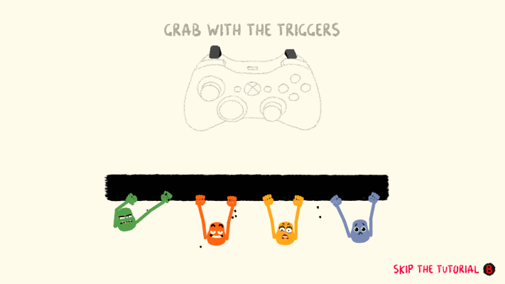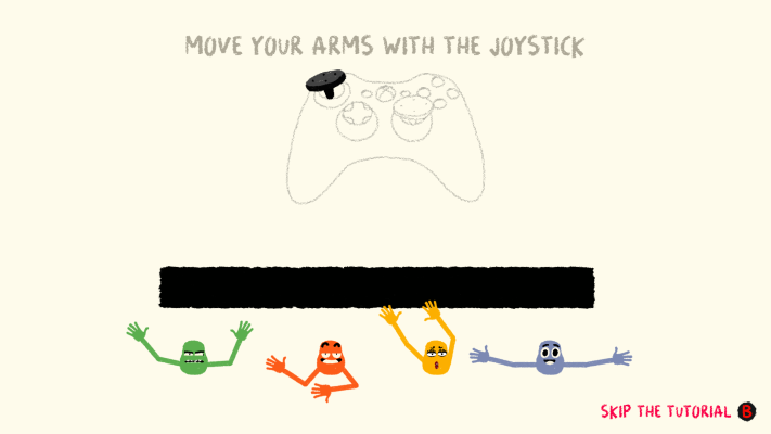 Heave Ho unites up to four players with a simple goal – don’t fall to your death. Grapplers will use their own two hands and the outstretched grip of their friends to swing, fling, and soar across each level on their way to victory.
