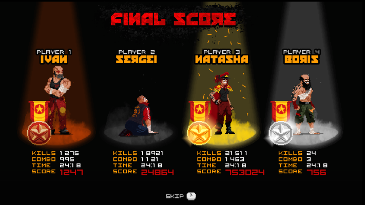 Mother Russia Bleeds is an ultra-violent co-op brawler overflowing with an unmistakable style and unforgettably brutal action for up to four players at once. Set in an alternate U.S.S.R, the story centers on a desperate crew of imprisoned street fighters that must overcome an oppressive criminal authority and forced drug addictions through any means necessary. Battle solo or alongside friends in an exceptional story mode campaign or harden your resolve in the savage Survival Mode.